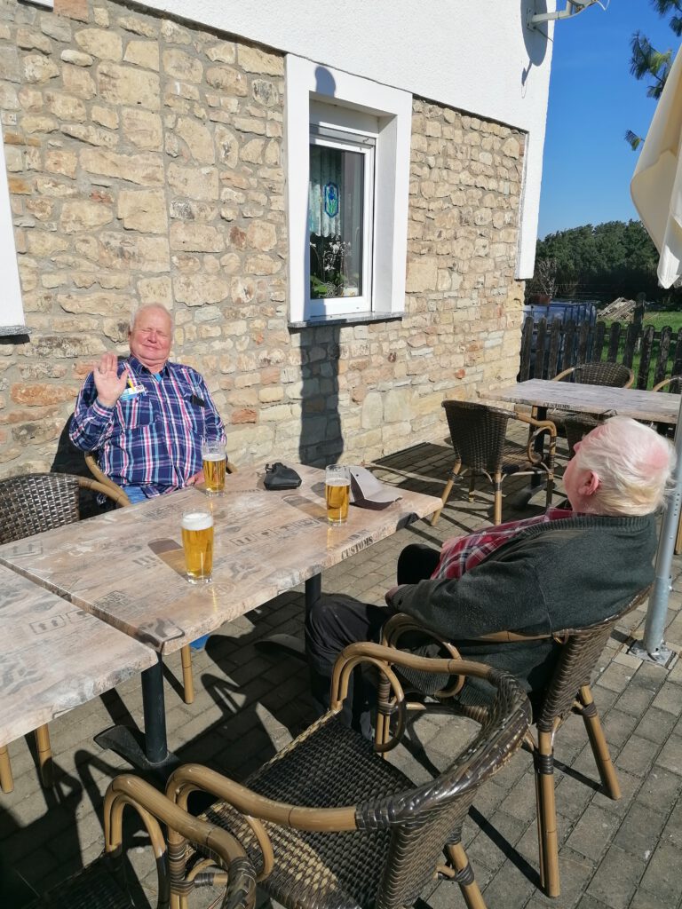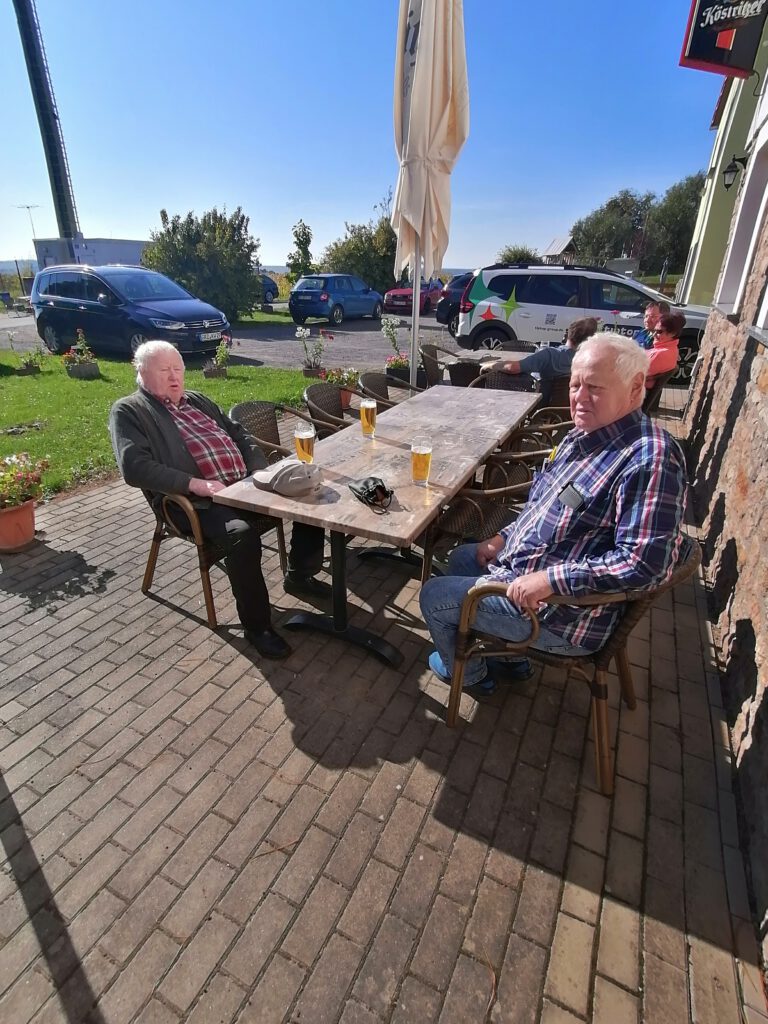 Obwohl die Sonne schien, war es schon recht frisch auf dem Käseberg, so dass der Schwerpunkt der Veranstaltung – gut betreut durchs Team der Gaststätte – im Warmen stattfinden konnte.